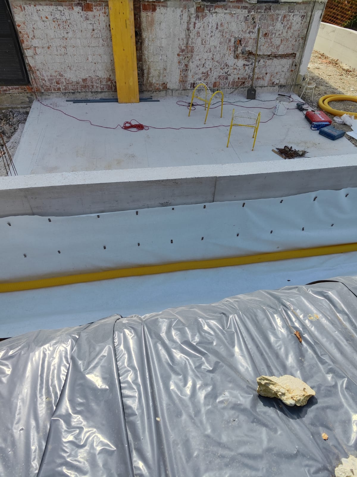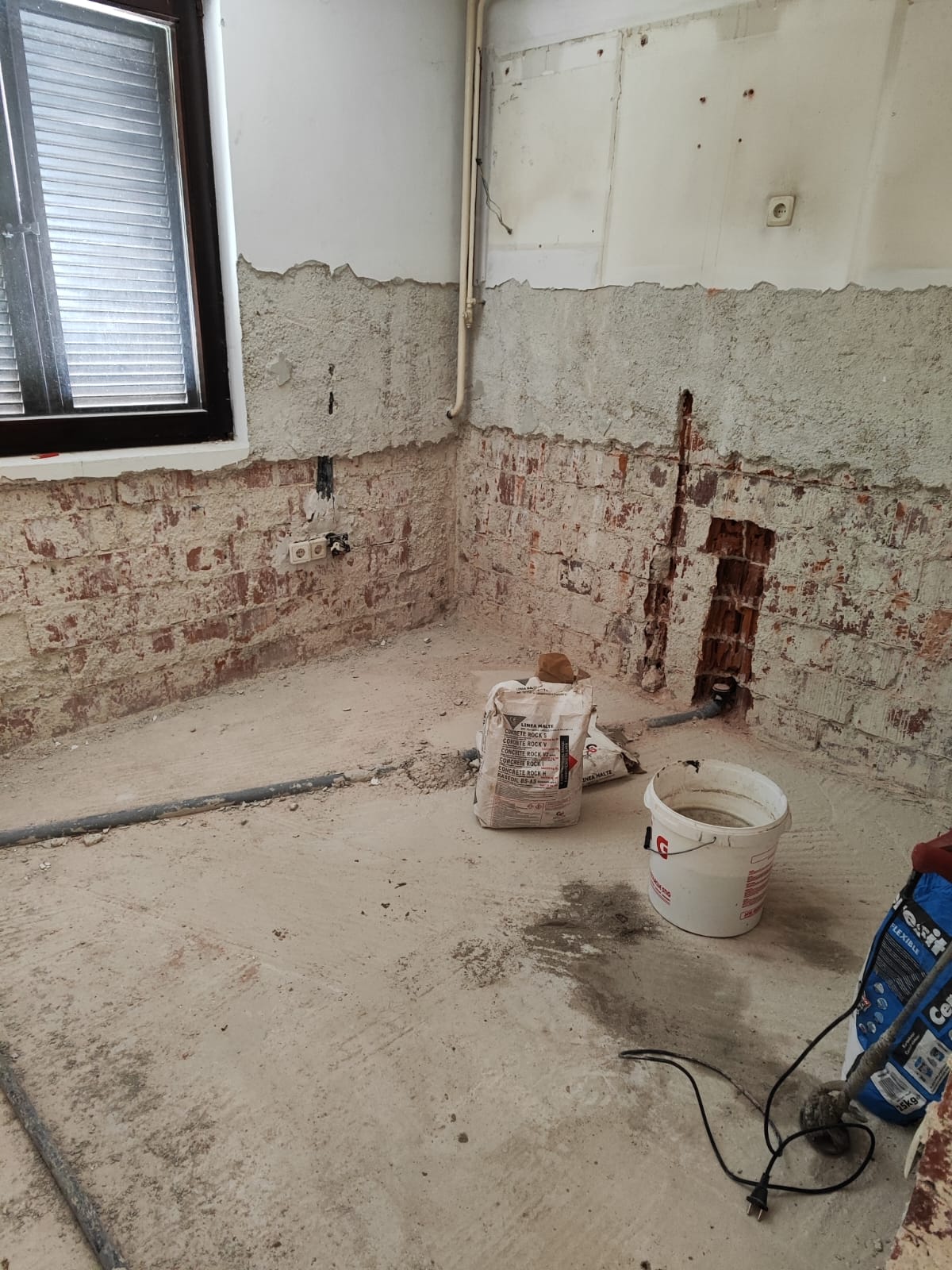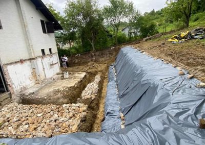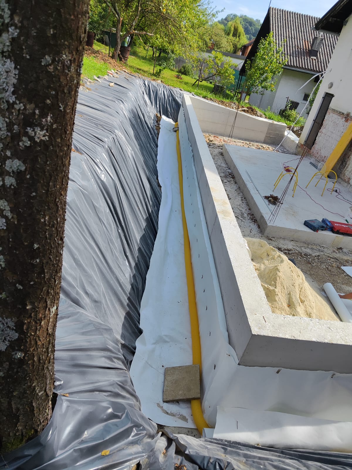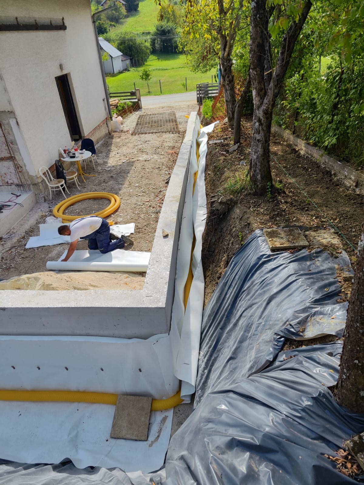 S vanjske strane provedeni su radovi drenaže i postavljanja visokokvalitetne hidroizolacije kako bi se spriječio daljnji prodor vlage i zaštitili temelji. Ove mjere uključivale su i pažljivo projektiranje sustava odvodnje kako bi se učinkovito upravljalo podzemnim vodama. Unutarnji radovi obuhvatili su kompletnu sanaciju zidova i podova, uključujući uklanjanje oštećenih slojeva, obnovu strukture i primjenu specijalnih materijala koji osiguravaju otpornost na vlagu i dodatnu trajnost.